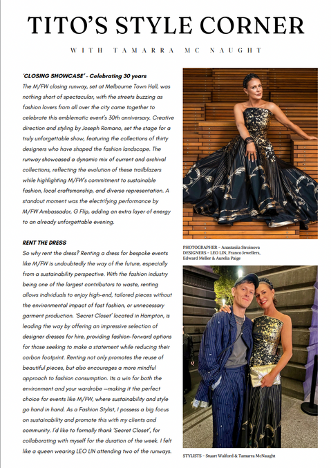Tamarra McNaught, the visionary force behind TITO STYLE, was featured at the National Gallery of Victoria for the Grand Opening Media Launch of the iconic Alexander McQueen: Mind, Mythos, Muse exhibition. Interviewed for the Australian TV series Foreign Influence, Tamarra’s segment has aired across major Australian networks - including Foxtel, Aurora TV, SBS, and Channel 31 - as well as globally via Amazon (UK and Ireland) and Prime (USA).